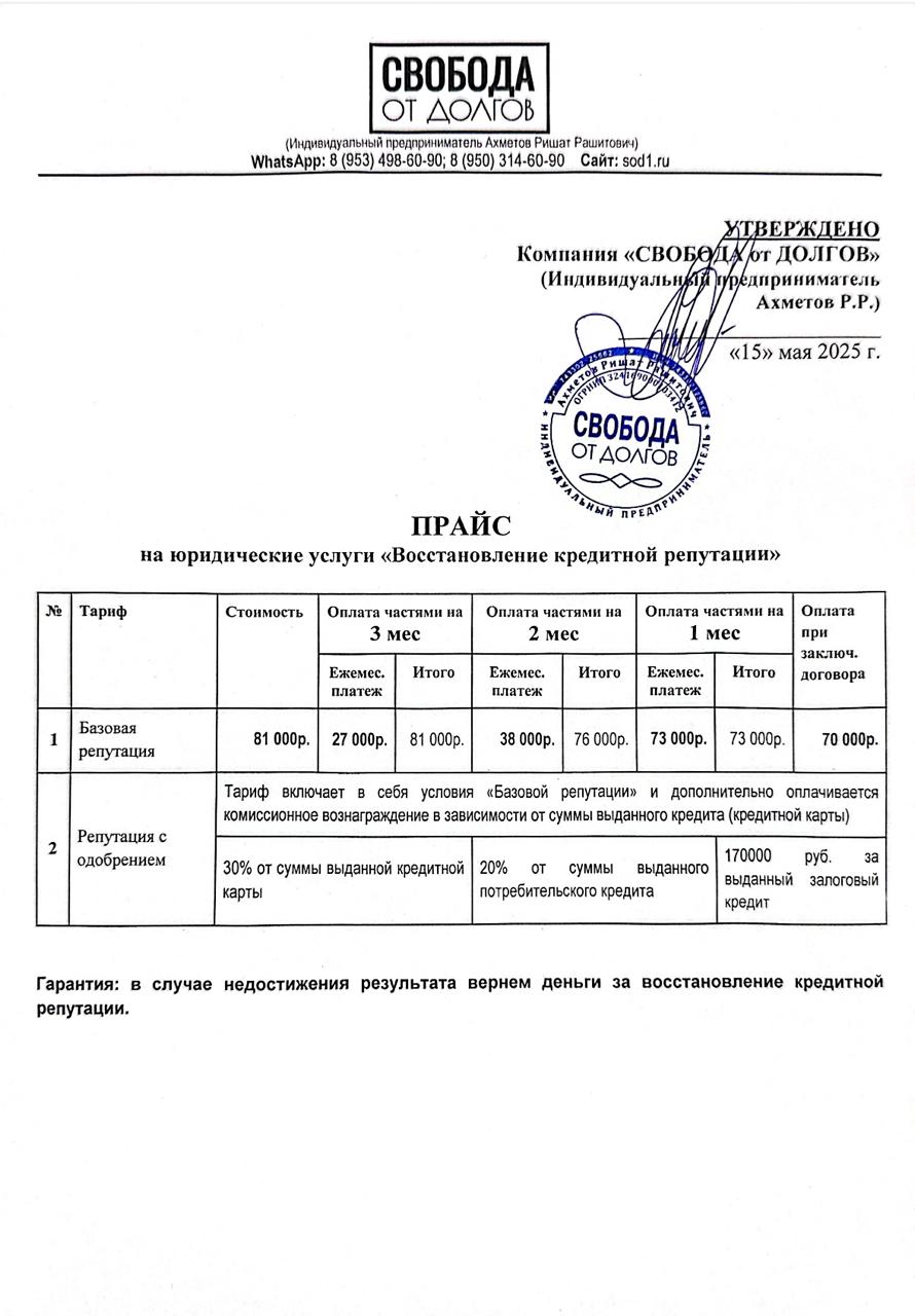 компании «СВОБОДА от ДОЛГОВ» (ИП Ахметова Екатерина Павловна)